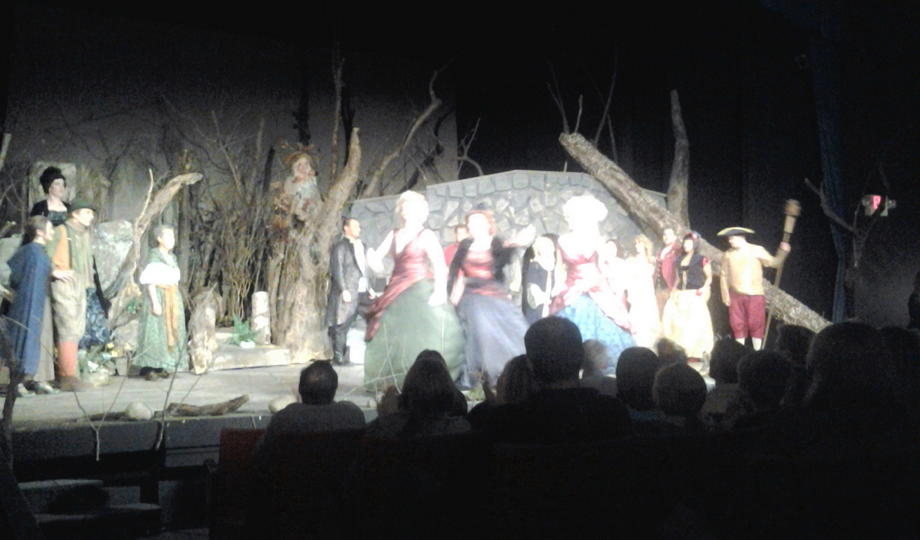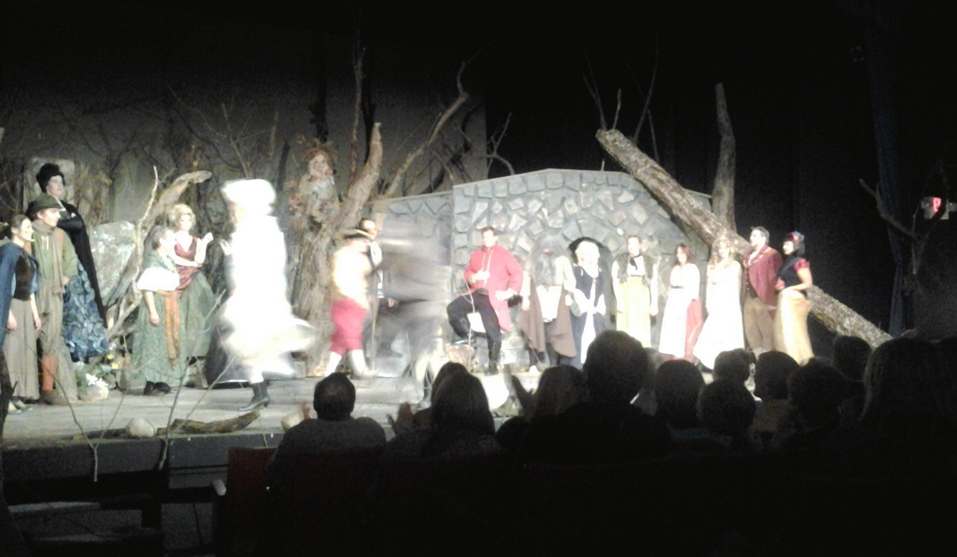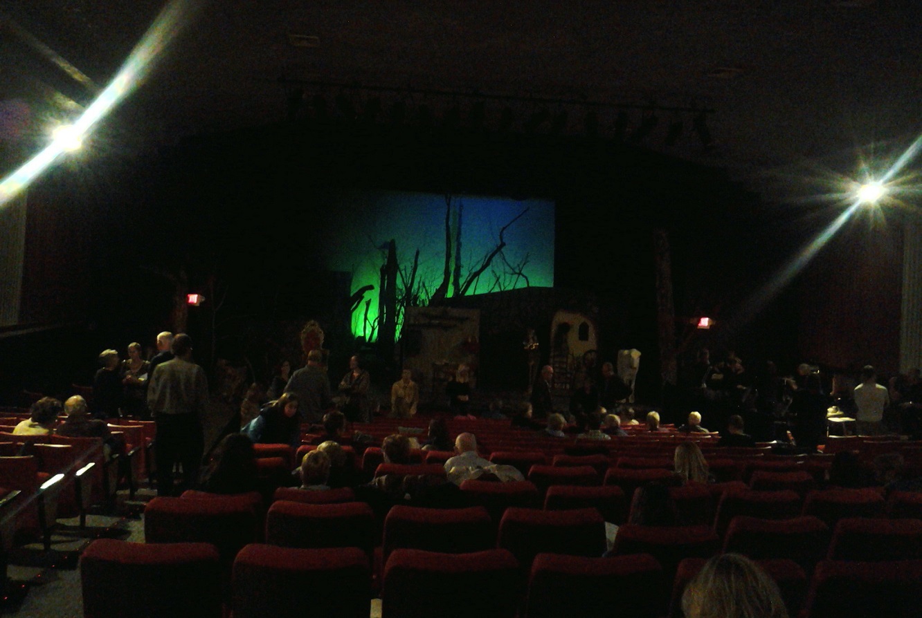 [All photos courtesy of the Super with her tablet. Here Ben Klipfer, the guy in charge of the theatre, addresses the audience reminding all to turn off their cell phones. If a phone rings during performance, the offender will be assigned 40 hours of hardship duty on a Kim Kardashian watch.]