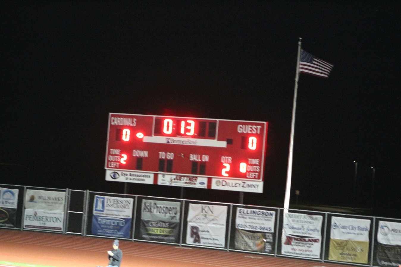 [And then the unthinkable happened, with 13 seconds left in the game. Sartell took a long shot toward the goal – likely just a run out the clock clearance – no Sabres around, just four Cardinal defenders. An attempted Cardinal header just to knock the ball off line deflected it just enough to for the goalie not to be able to make a play on it and into the net! Arrgghhhh! I’m glad I shot the scoreboard before they were able to put the goal up. Too bad such a terrific season had to end thusly. 😦 ]