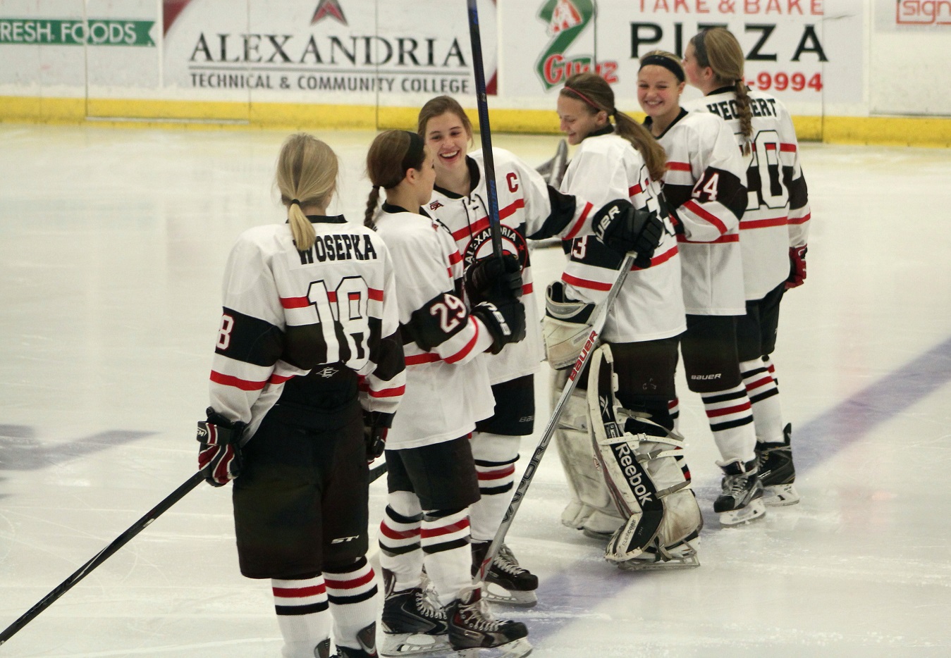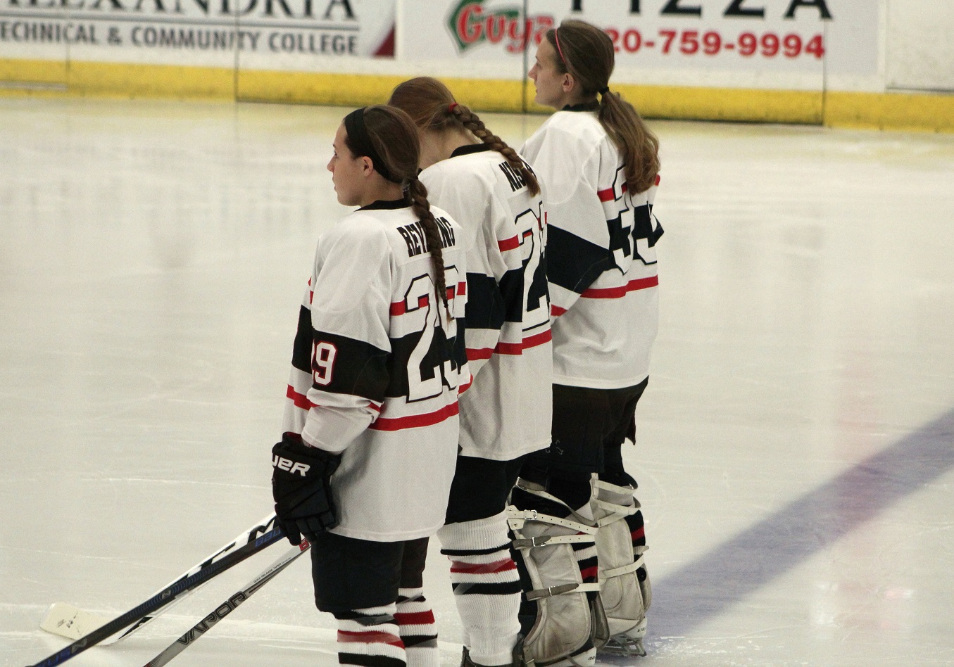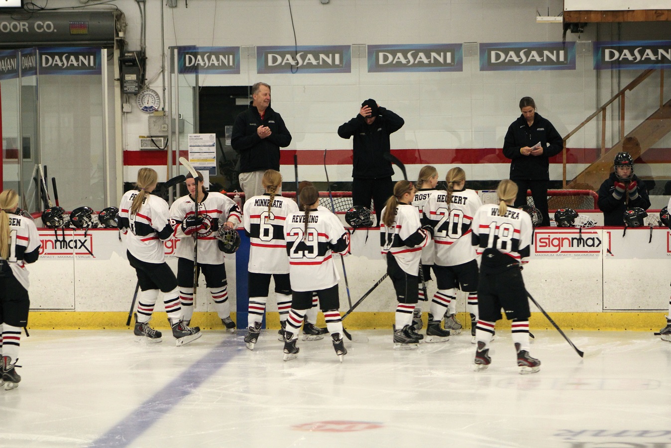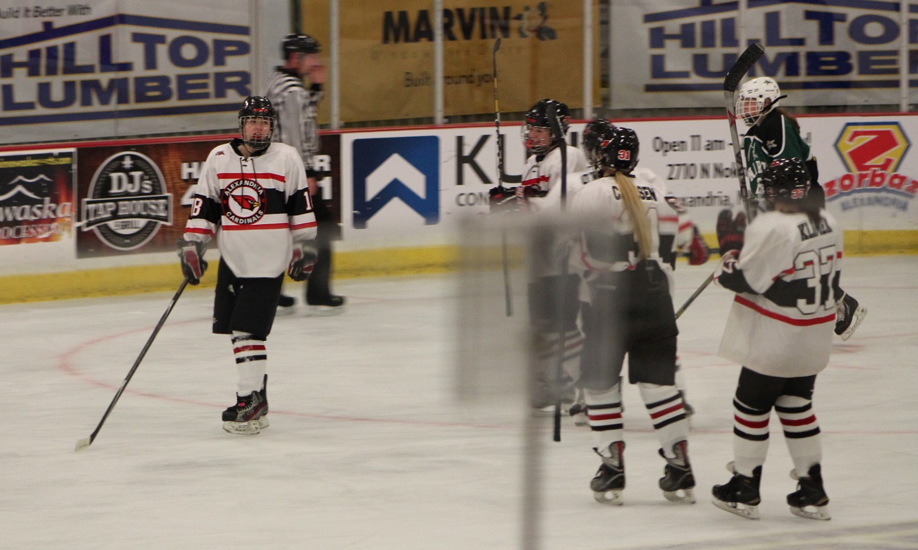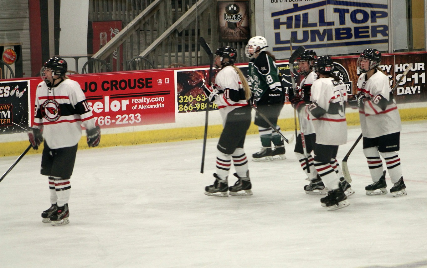 [This is an experienced team, with even the frosh and sophomores already having varsity experience. But we did notice . . . well, it looks like the JV roster is from last year? We know Onna O’Connor has decided to hang up her skates after a couple of knee surgeries, and there were a few players on both rosters who are not listed at all? North Metro has been a regular team on our schedule for the last few years, composed of players from Fridley, Osseo, Park Center, but even a Star fan sitting in front of us couldn’t name what other schools are involved? We have schedule full of Class AA teams which should prepare us well for tournament time.]