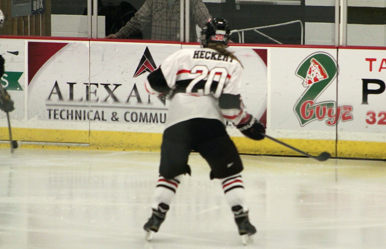 [Alexis Heckert (20), freshman forward; so with all this experience, still two freshman on the forward line.]