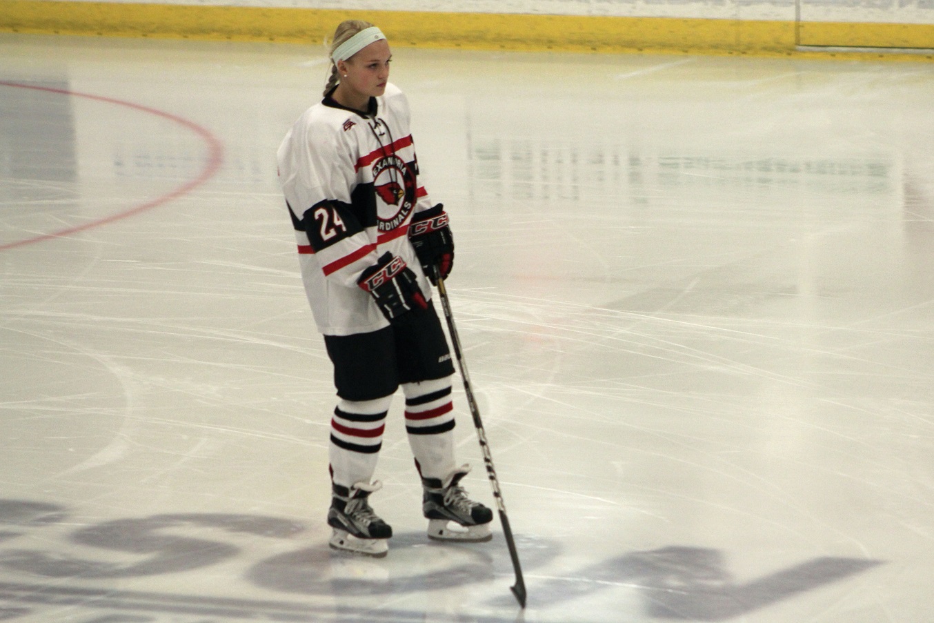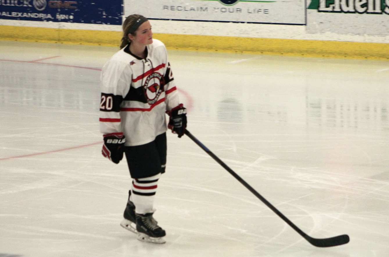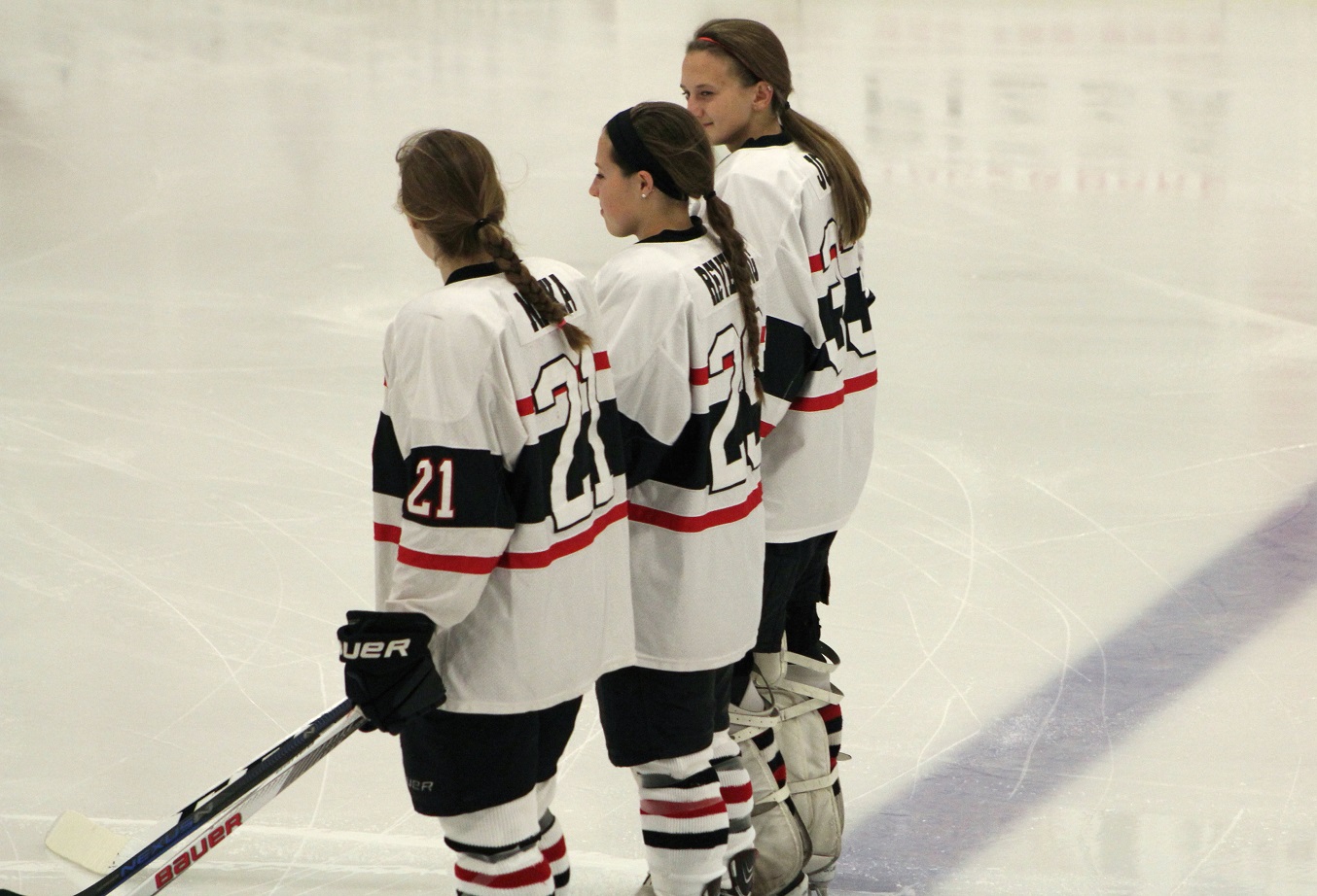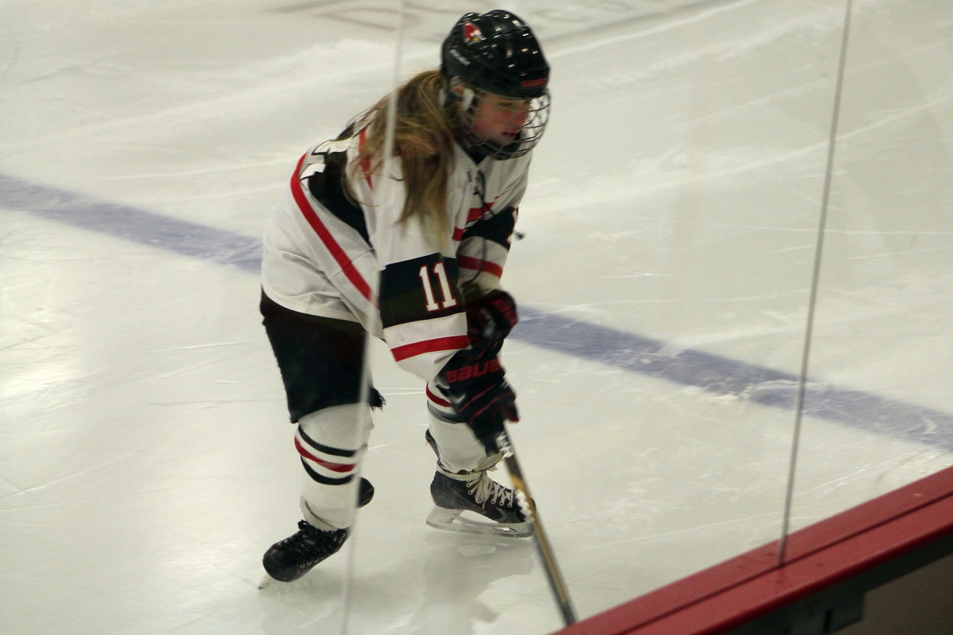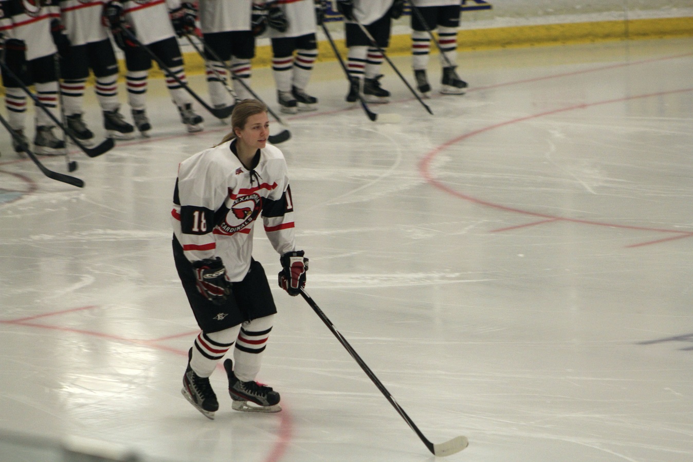 [Mackenzie Abrahamson (17), senior forward, is a good story like we seem to have every year. She hasn’t had a lot of varsity playing time until this year. Now she’s on a regular shift and got her first ever varsity goal this year. Cheers for Mackenzie!]