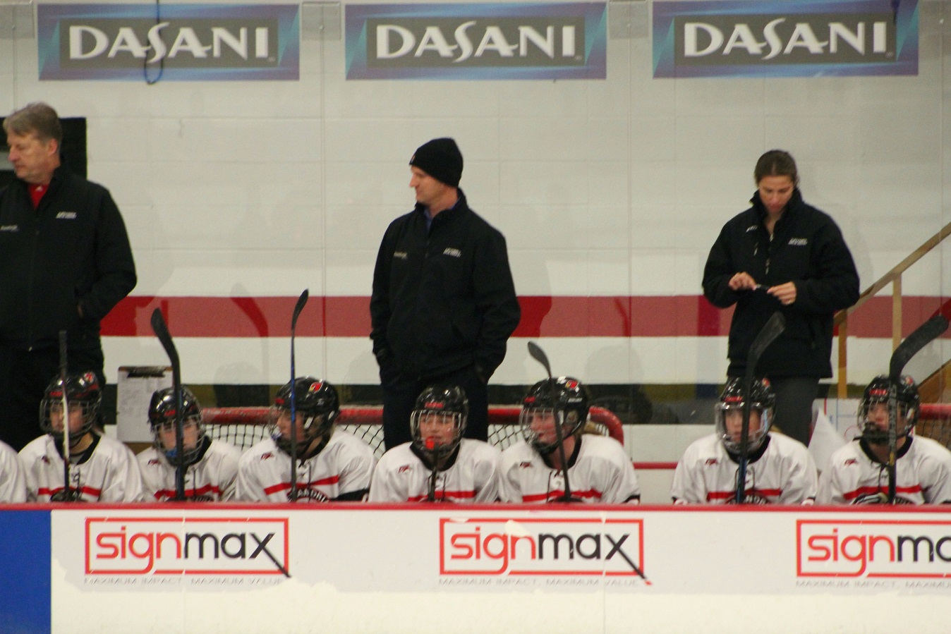 [McKenna and Mari in the offensive zone early in the 2nd period.]