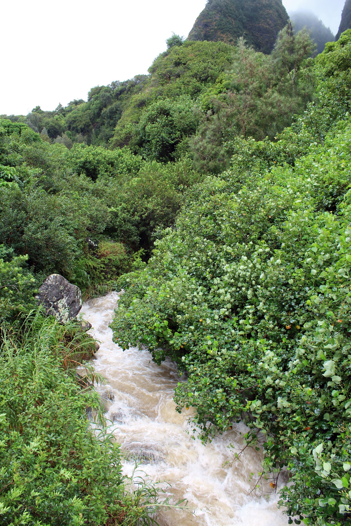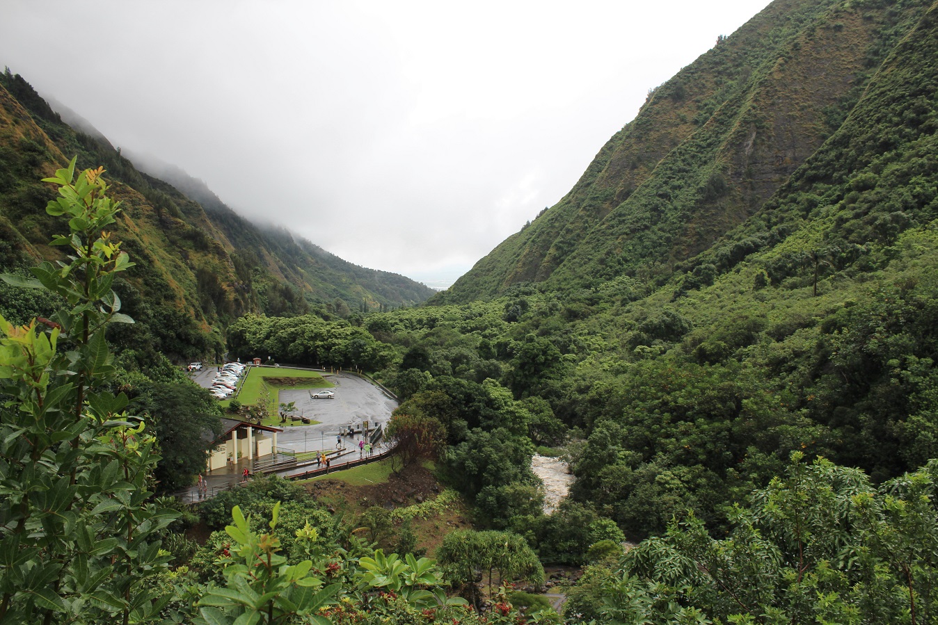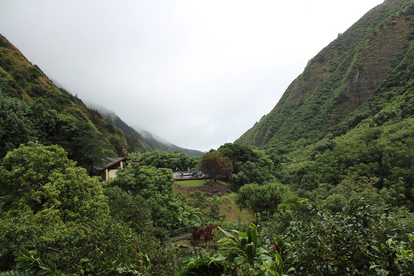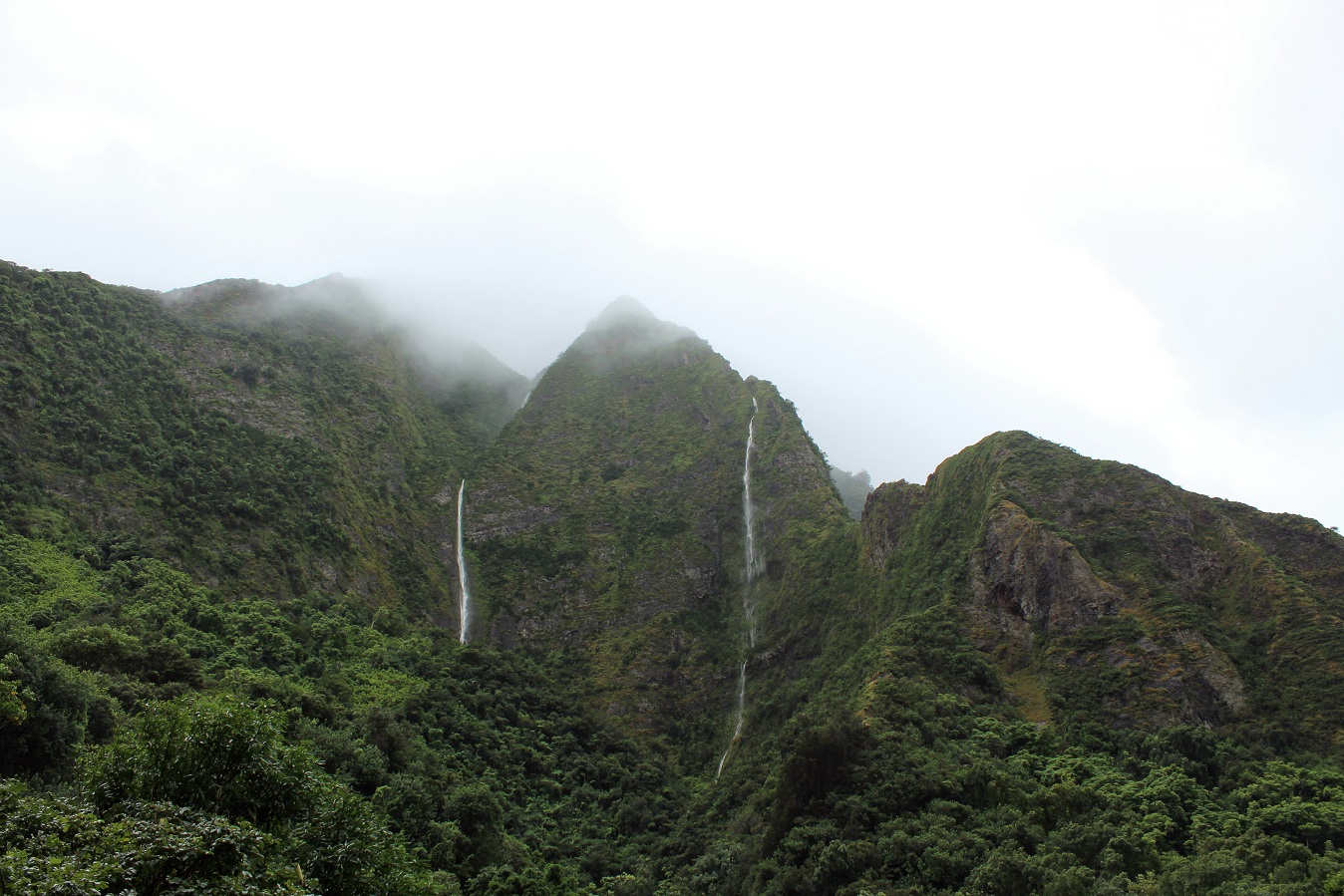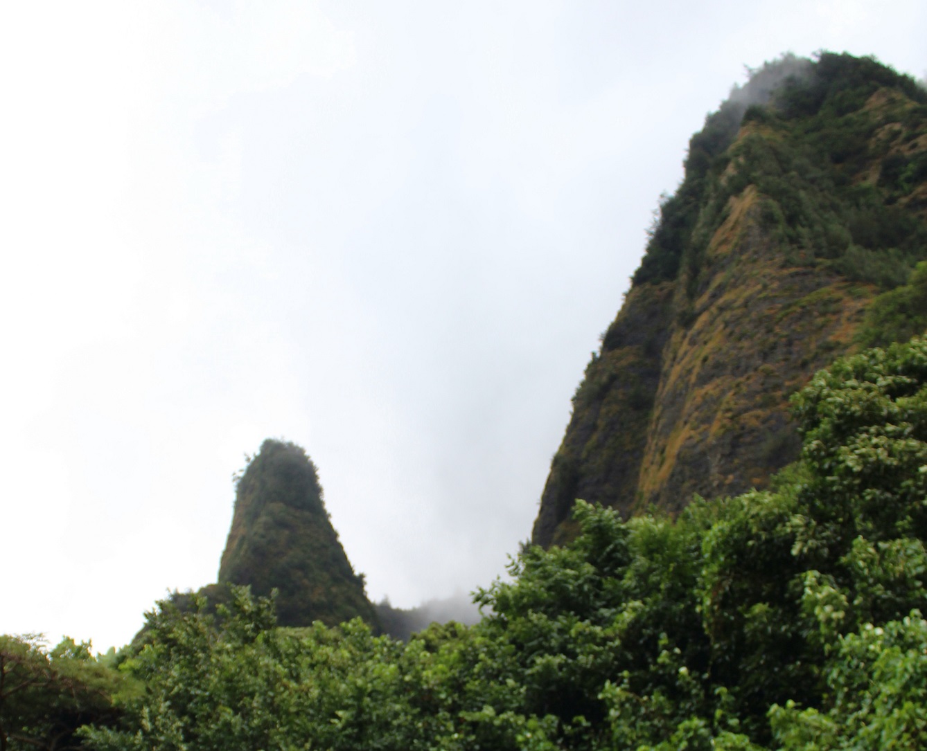 [Yes, chickens. Wild chickens. Gorgeous chickens. They’re everywhere . . . here on the way into Iao State Park.]