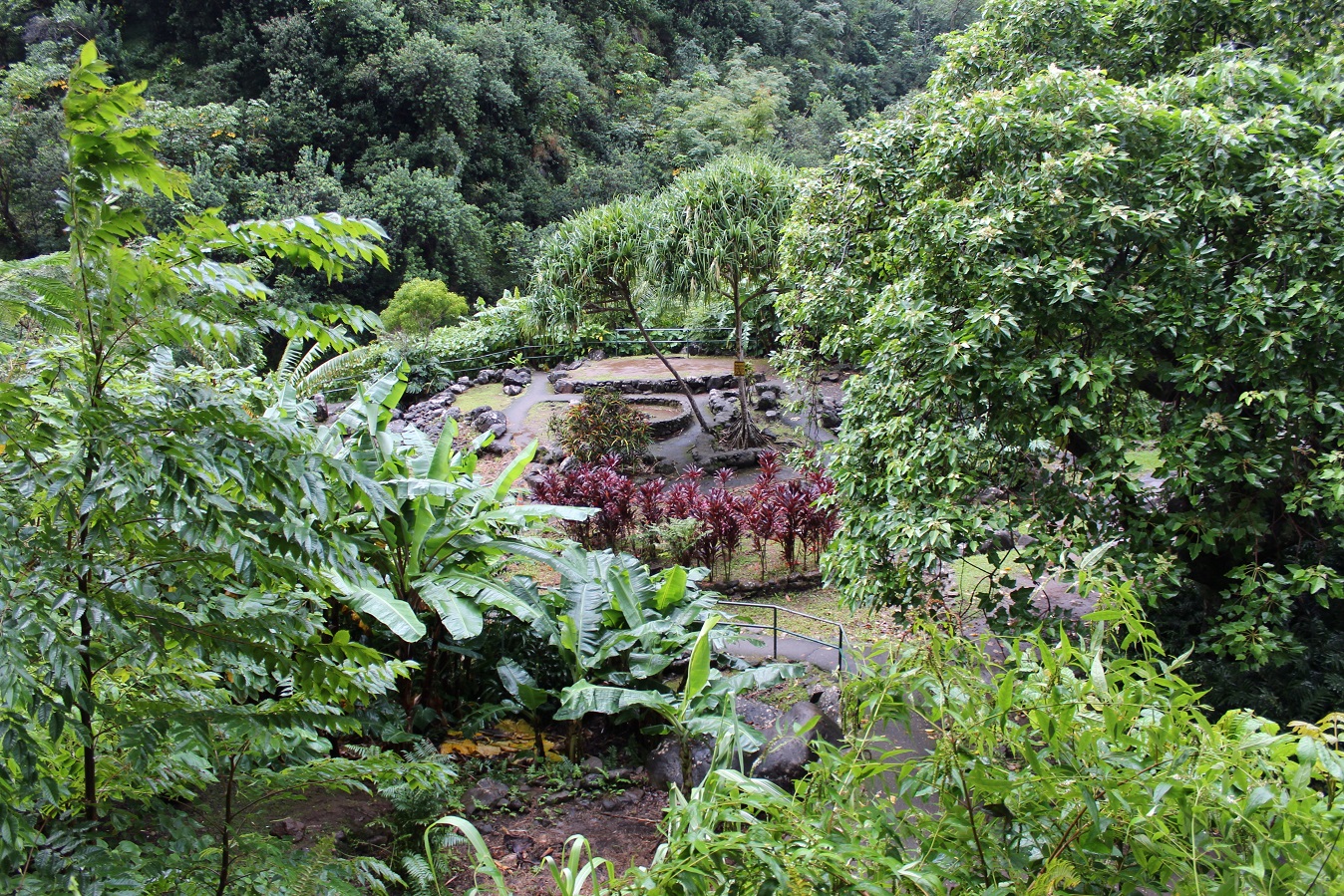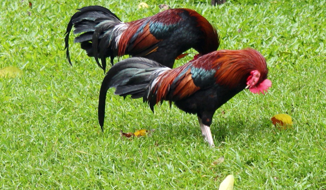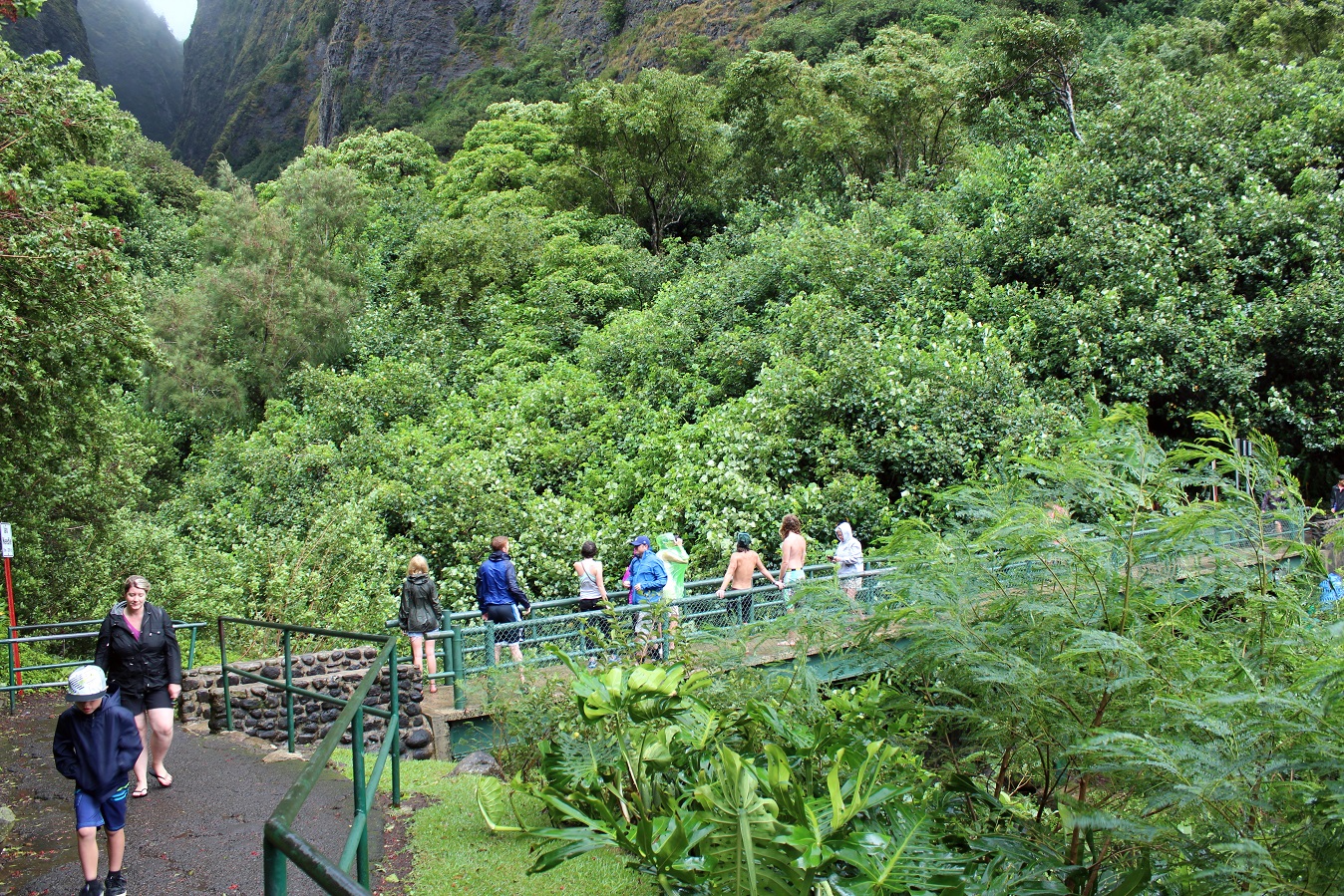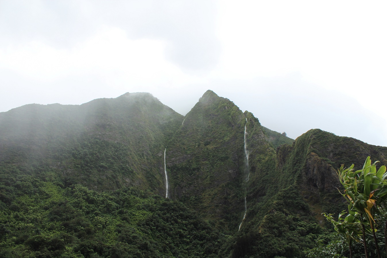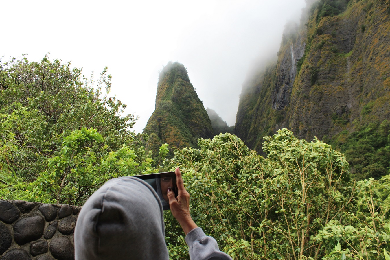 [Yes, chickens. Wild chickens. Gorgeous chickens. They’re everywhere . . . here on the way into Iao State Park.]