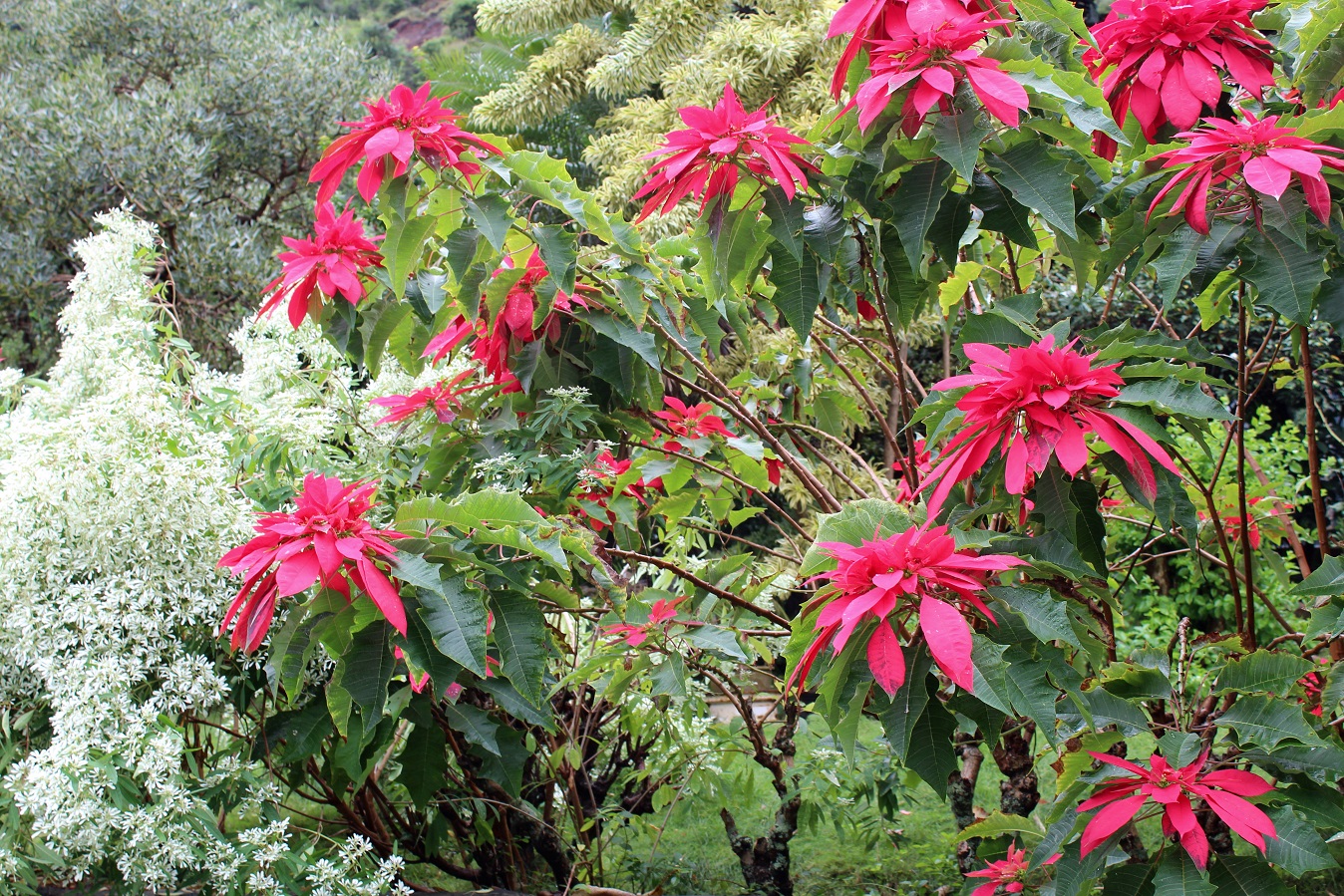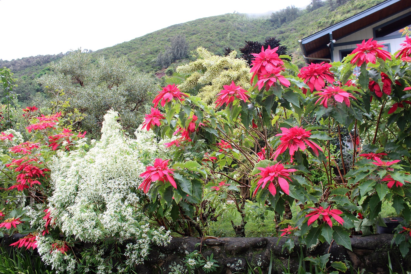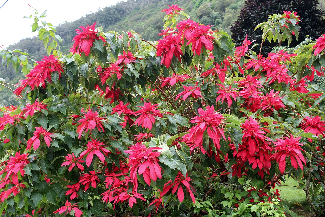 [Driving out, with the Super at the wheel, she stopped at these poinsettias and said, “Take a picture,” then drove forward 5 more feet and said, “Take a picture” . . . her wish was my command.]