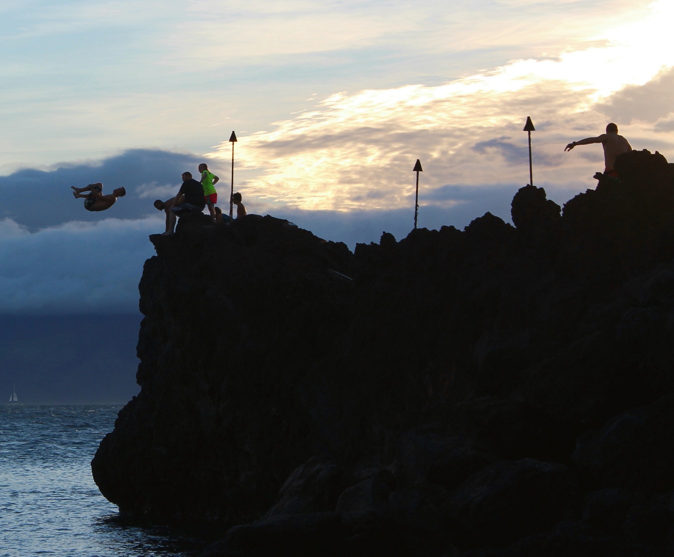 [The Black Cliff at the north end of our beach. That girl stood hanging over that edge for several minutes at a time, but she never did jump (of course, I could never even stood at the edge) . . . ]