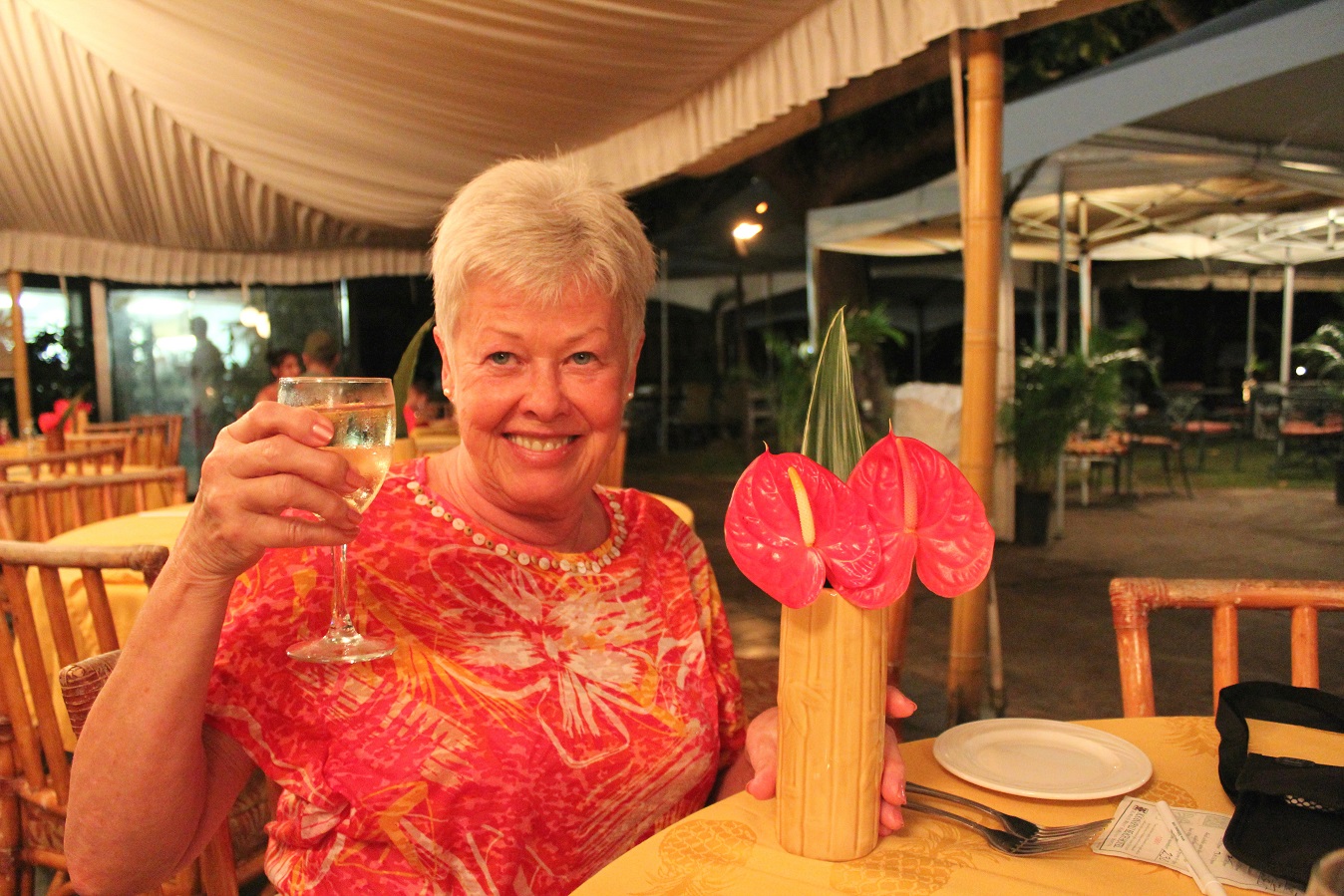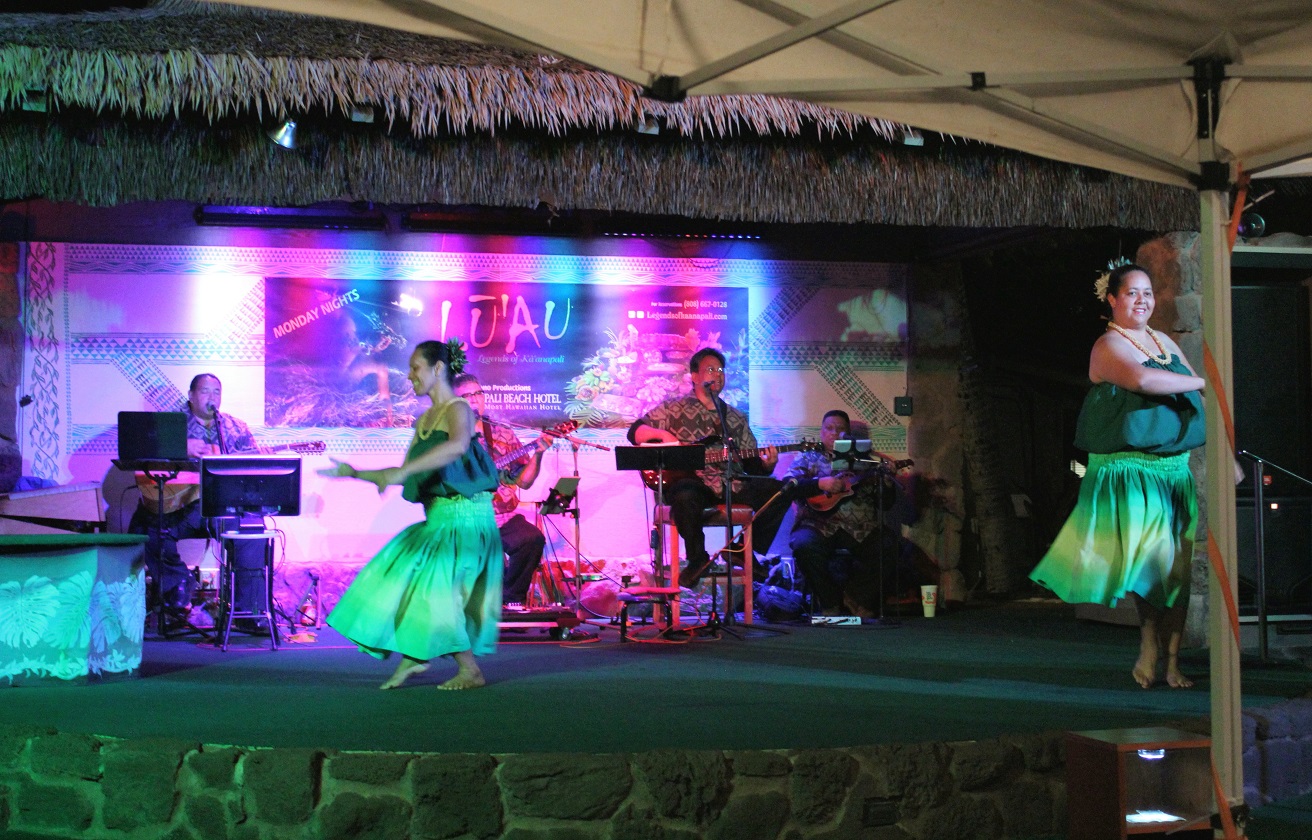 [Dinner and show outside, at our own hotel, hadn’t done that all week! We bid aloha as the next day we would be off to the Big Island.]
