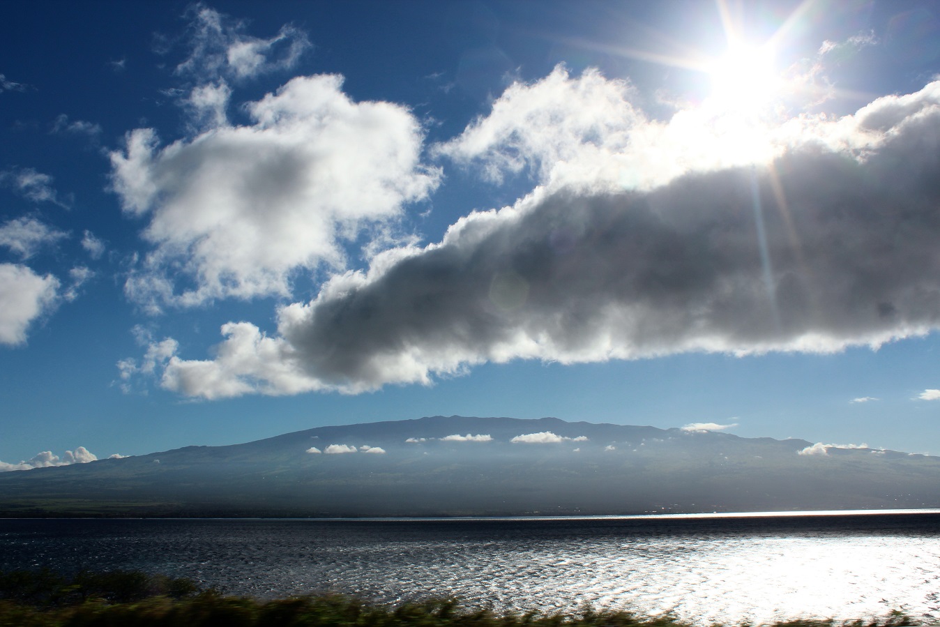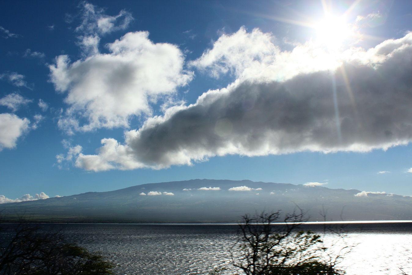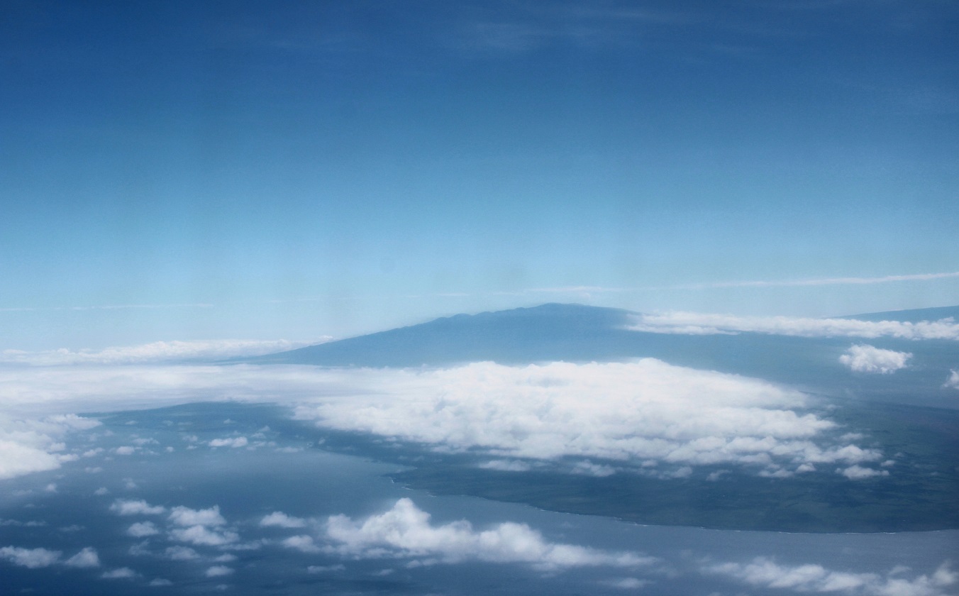 [On the road to the airport in Kahului, we finally got our best view of Haleakala – must have been a spectacular view into the caldera this day!]