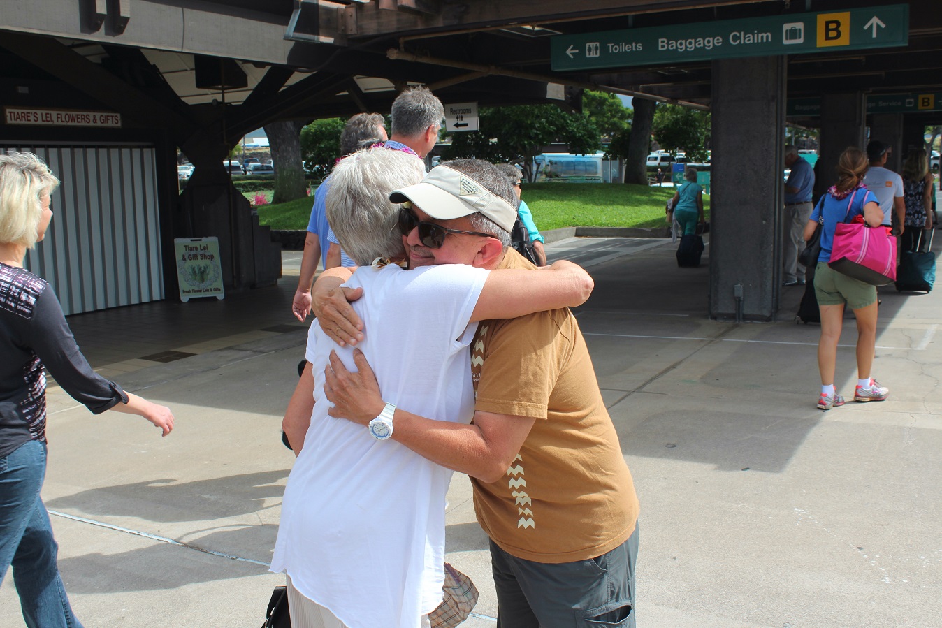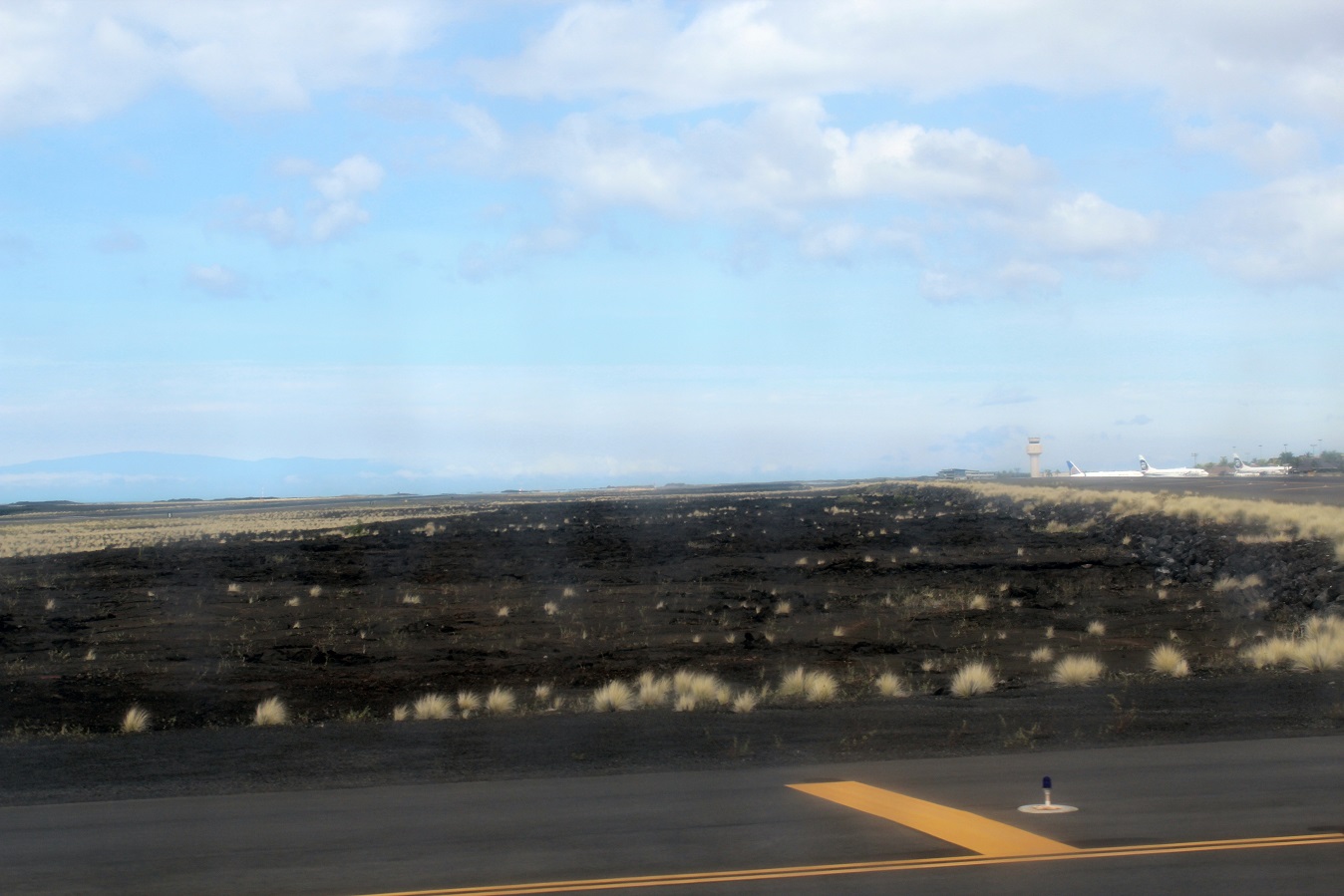 [They warn you that you’re actually not landing on an alien planet . . . but it is in the midst of a lava field. And being Hawaii, the airport facility is actually like a carport – no walls!]