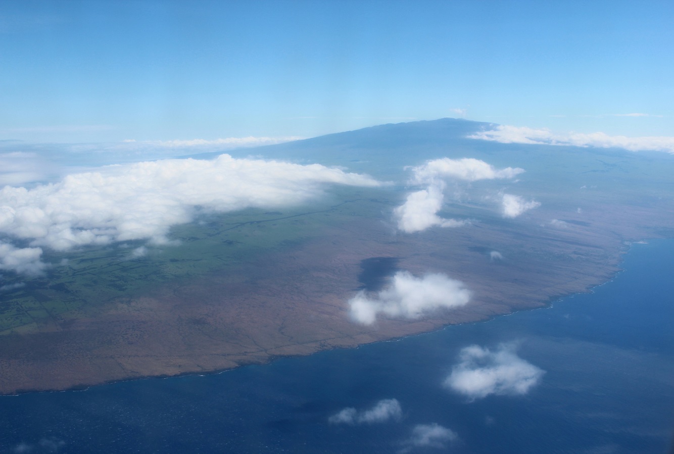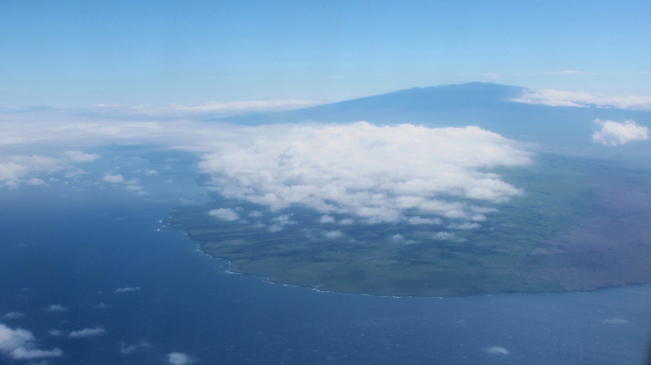 [Airborne and coming into Kona International Airport on the island of Hawaii.]
