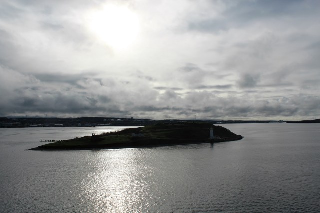 [Georges Island (named after George II of Great Britain is a glacial drumlin and the largest island entirely within the harbour limits of Halifax Harbour. The Island is the location of Fort Charlotte – named after King George’s wife Charlotte. Fort Charlotte was built during Father Le Loutre’s War, a year after Citadel Hill (Fort George). The island is now a National Historic Site of Canada. (Wikipedia)]